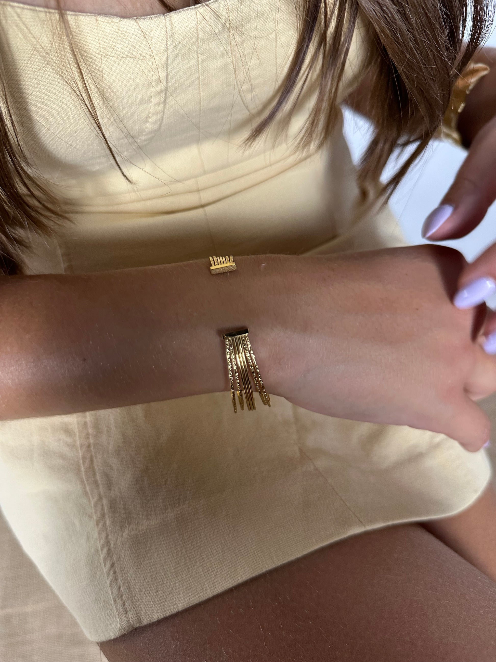 - Bracelet type jonc semainier en acier inoxydable composé de 7 anneaux (4 striés et 3 lisses).
