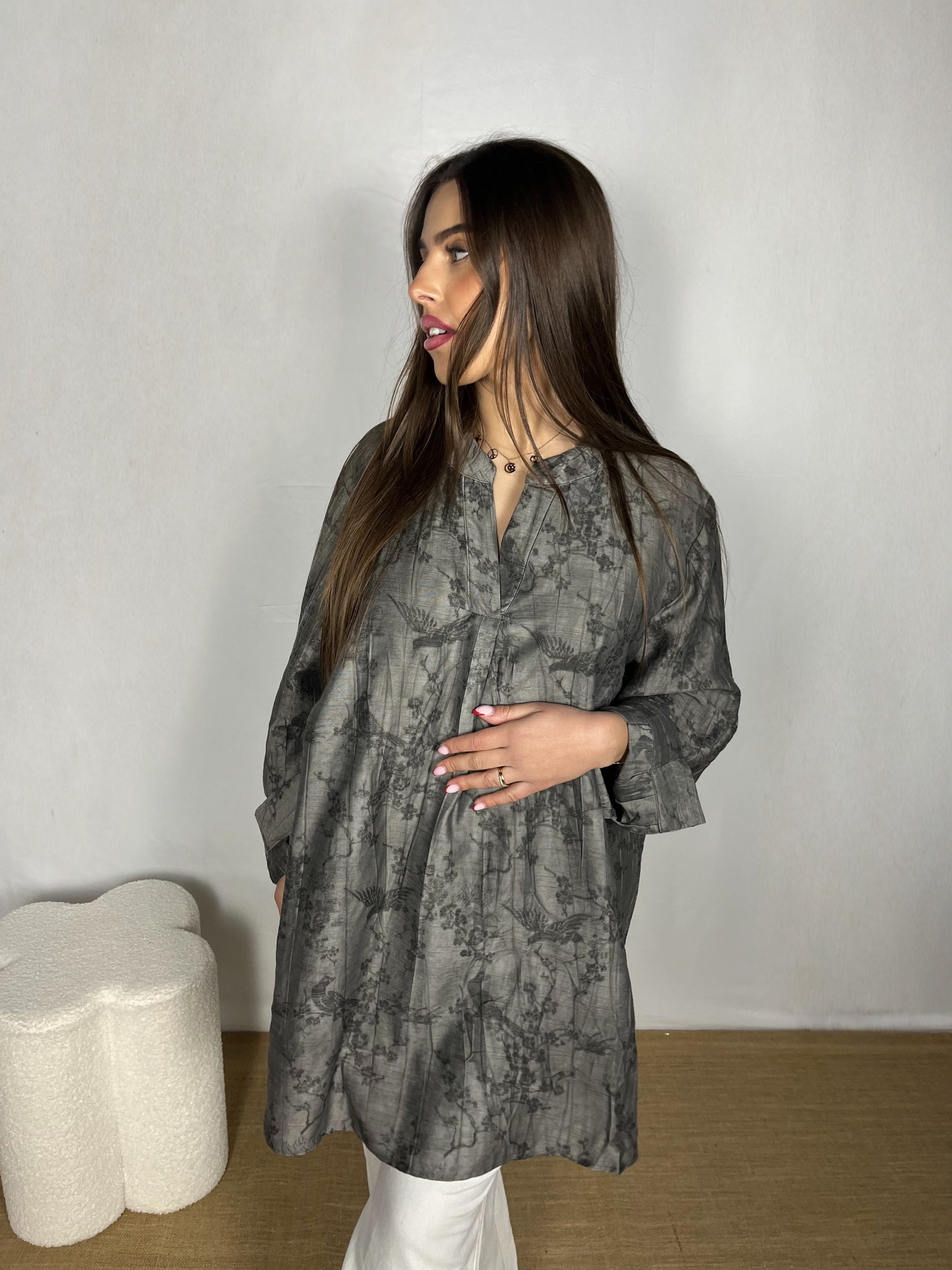• Détails : Chemise avec une coupe asymétrique, l'avant est plus court que l'arrière, créant un effet visuel dynamique.