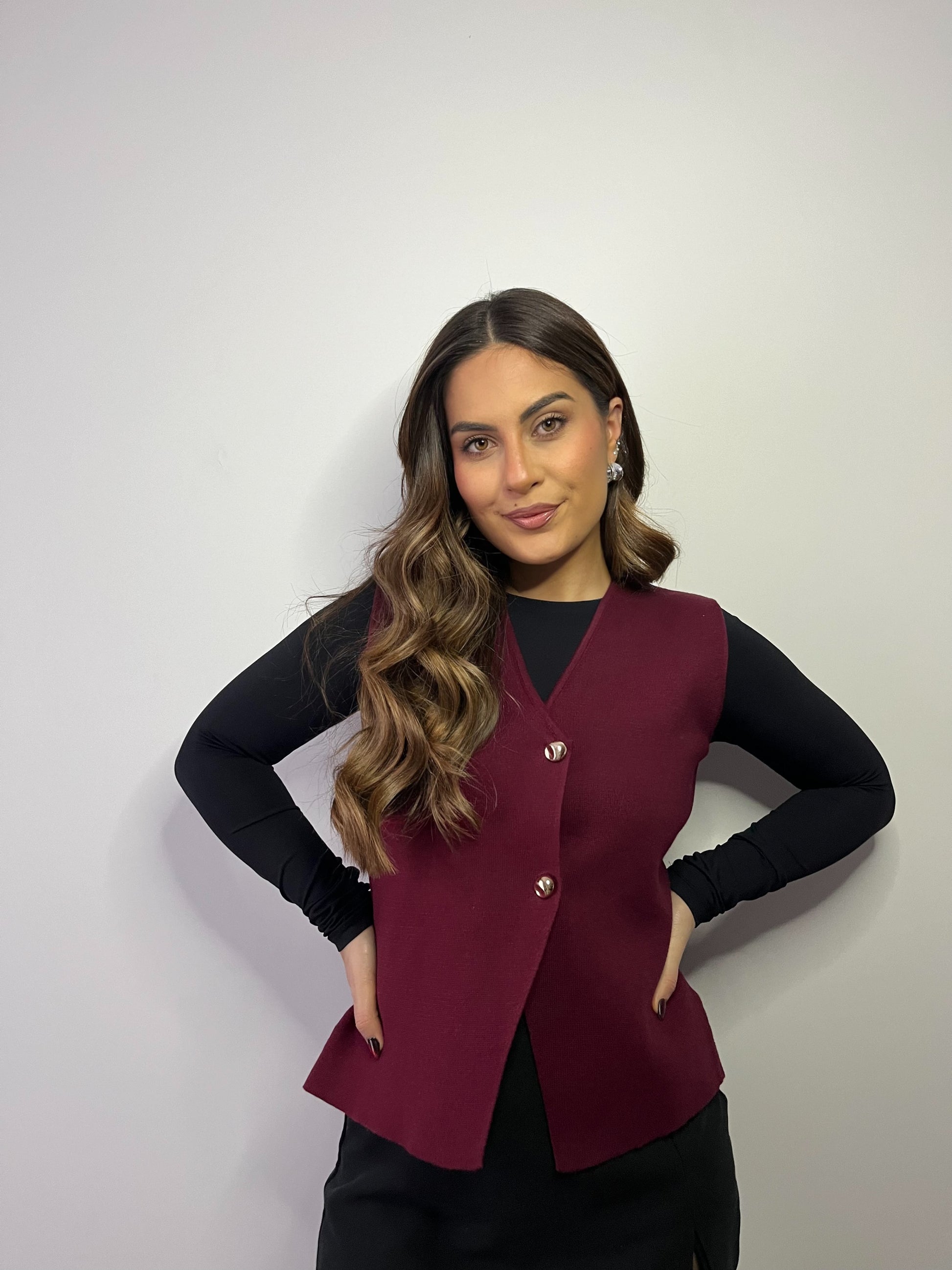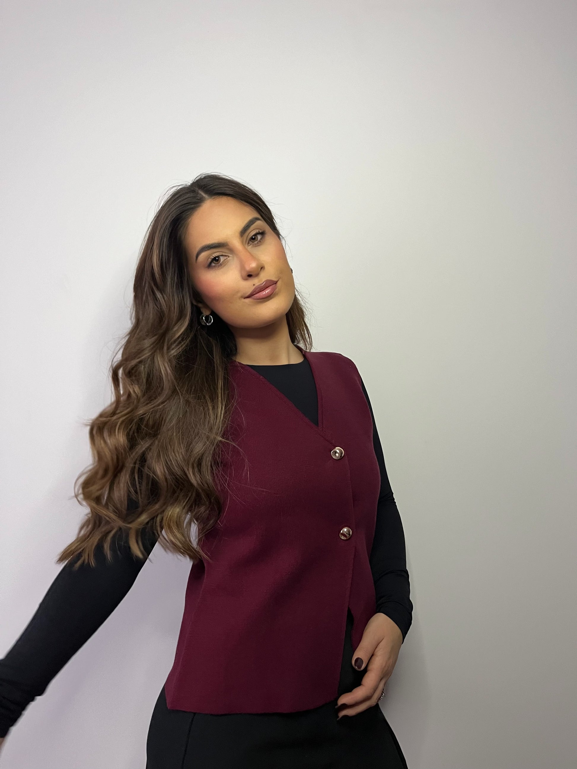 Ce top couleur bordeaux allie style classique et détails raffinés pour une tenue sophistiquée. Il est parfait pour les occasions où vous souhaitez rester chic tout en restant confortable.